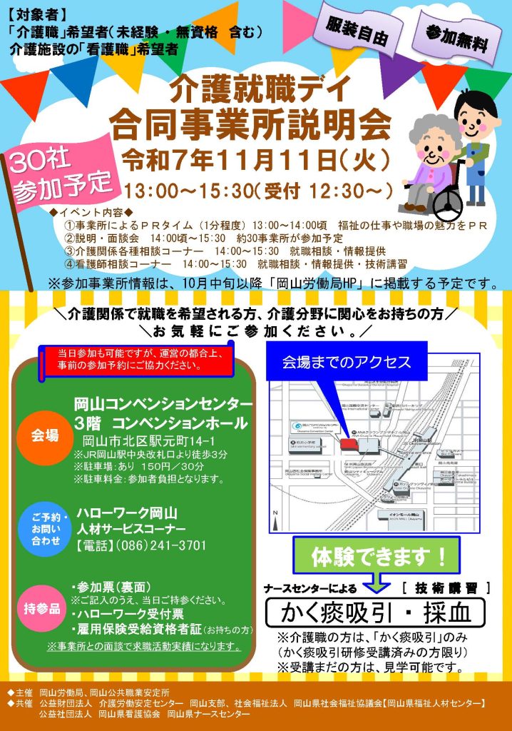 【ハローワーク岡山】11月11日介護就職デイ「合同事業所説明会」開催のお知らせ