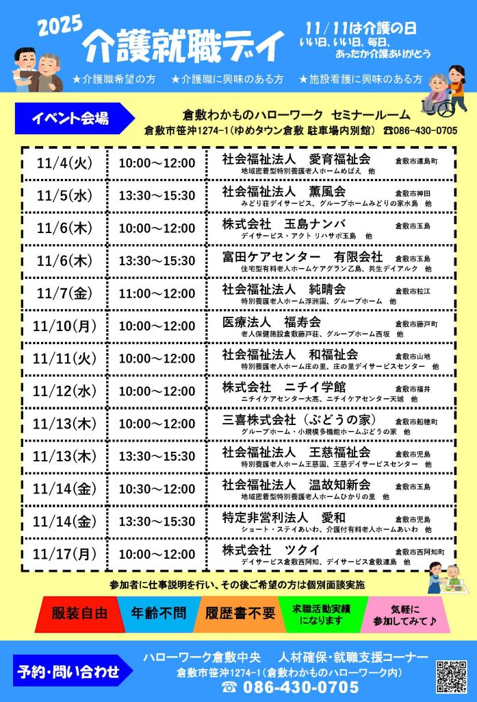 【ハローワーク倉敷中央】介護就職デイ開催のご案内