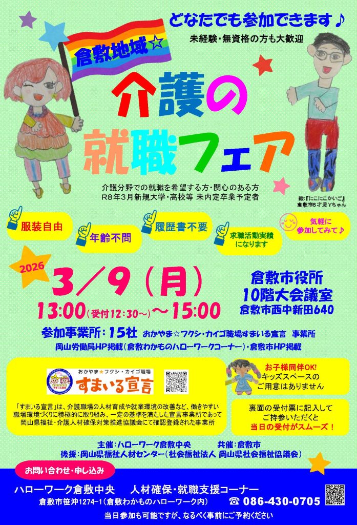 【ハローワーク倉敷中央】3月9日「倉敷地域 介護の就職フェア」開催のご案内