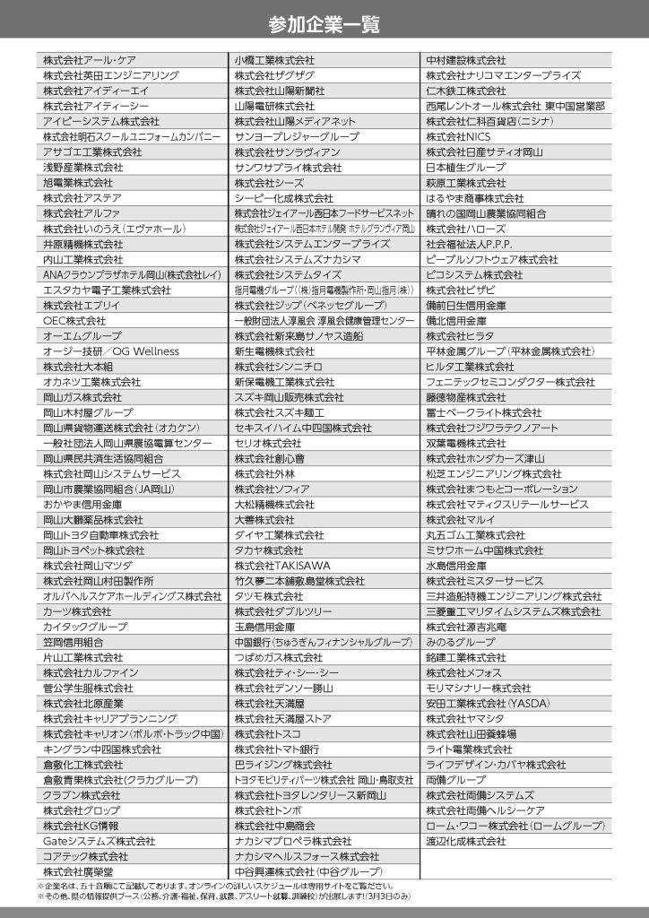 対面及びオンラインで開催され、両日ともに岡山の大学が選んだ優良企業160社が参加します。